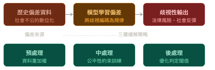 從治理趨勢來看,單純的「多元化訓練資料」並不足以解決問題。真正需要的是在評估框架中建立持續的偏差偵測機制,讓偏差的識別成為常態營運流程,而非只在爭議發生後才啟動的事後補救。